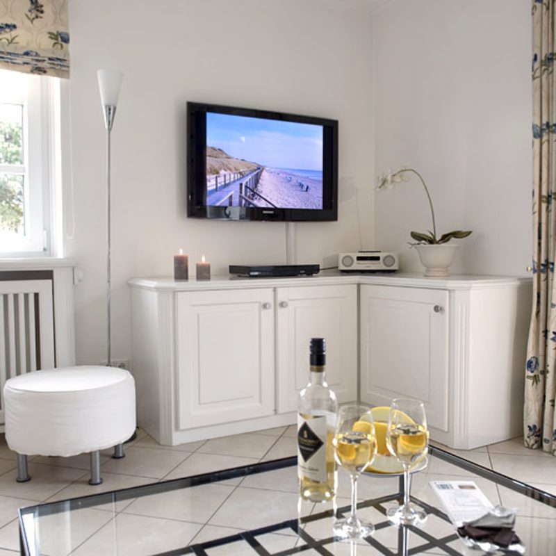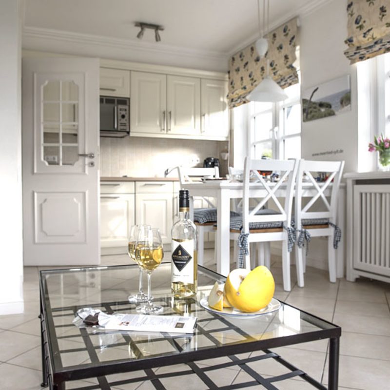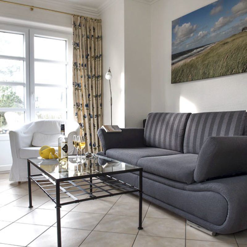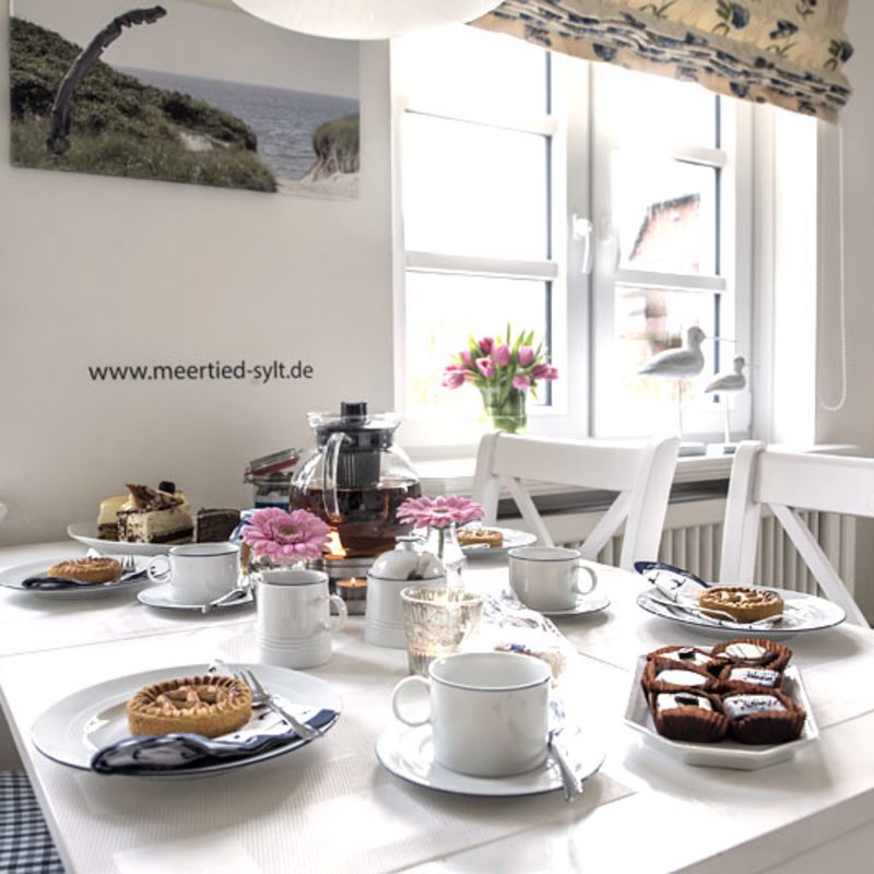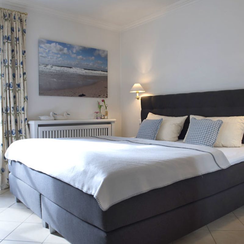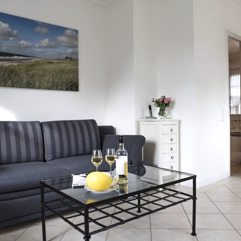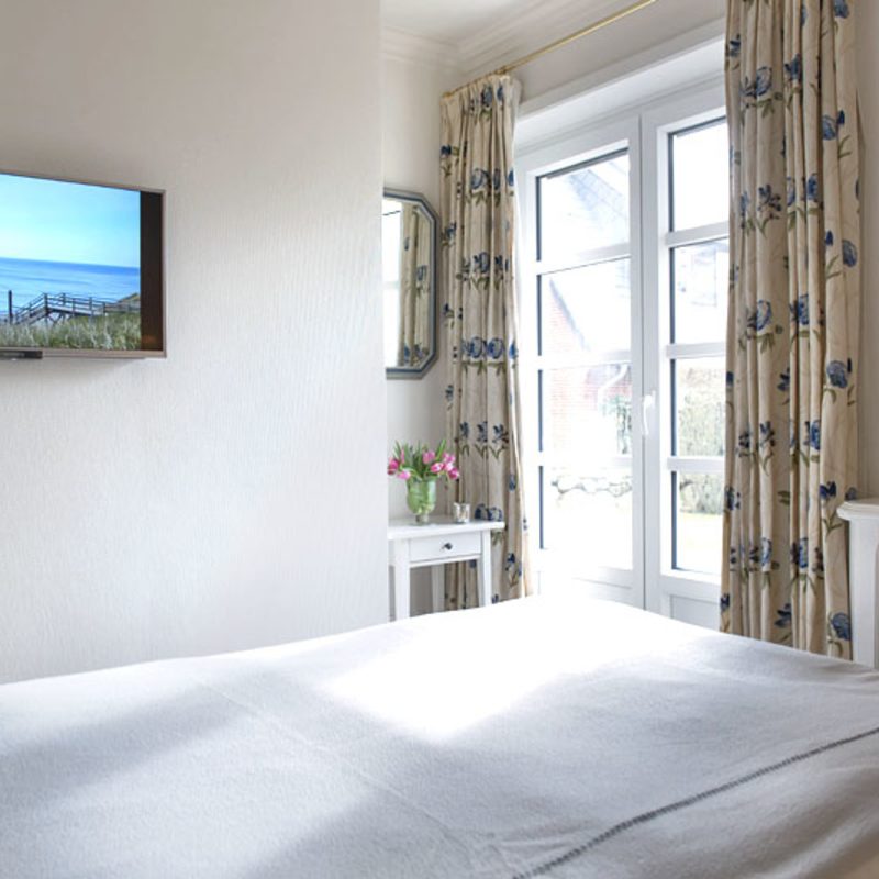 Meertied-Sylt für 2 Personen. Unsere Ferienwohnung im Erdgeschoß für 2 Personen hat eine Größe von ca. 55 qm und eine nach Süden ausgerichtete Terrasse inklusive Gartenmöbel und einem Sylter Strandkorb. Die ebenerdige 2-Zimmer-Wohnung ist stilvoll und hochwertig eingerichtet, verfügt über ein Bad mit Dusche und Fön sowie ein Doppelschlafzimmer mit Boxspring-Bett.